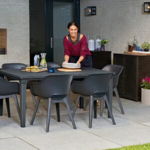 Záhradný set CALLAN | grafit Exkluzívny záhradný plastový set CALLAN v prevedení grafit prinesie do vášho exteriéru štýlový a pohodlný dotyk. Záhradný set obsahuje kvalitný plastový stôl spolu so šiestimi elegantnými stoličkami. Záhradný plastový set CALLAN vo farbe grafit je ideálny pre rôzne príležitosti, vrátane rodinných osláv, grilovačiek alebo jednoducho na relaxačné popoludnia na slnku. Investujte do kvalitného…